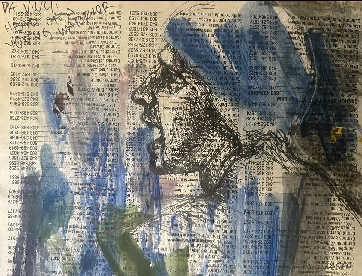 Leonardo da Vinci. Head of a Young Warrior (study for The Battle of Anghiari). c. 1504. Red chalk.